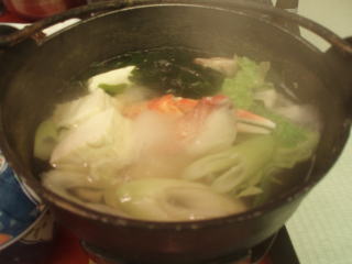 海鮮鍋は、ずわい蟹爪、鯛、しいたけ、ネギなどが入ってて、かなりおいしかったです。