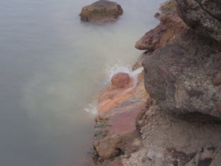 不思議なことに、源泉掛け流しなので、海にそのまま温泉を流してるんだけど、そこに、小魚がいっぱい群がってるんです。