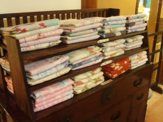 館内は、ロビーにいろりがあり、そこで女性のみ、好きな浴衣を選べるようになってます。