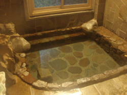 広くて深い岩風呂は、丁度よいお湯加減でした。