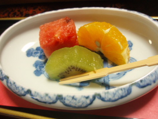 素麺を、さいごに食べて、デザートは、甘いスイカと、オレンジと、キウイを食べて、楽しい食事が終わりました。