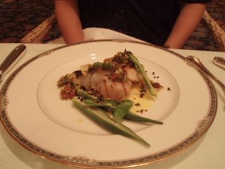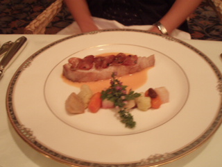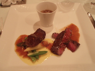 まず前菜は、カボチャのテリーヌの上に、鴨のローストが、乗ってました。