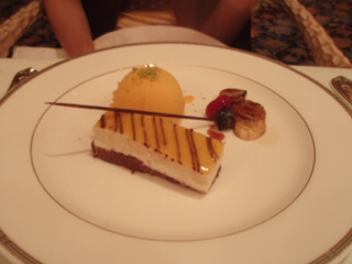 デザートは、バナナチーズケーキ、ブルーベリー、ラズベリー、マンゴーアイスでした。