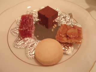 最後に、プチ菓子が、出てきて、紅茶と一緒に食べて、食事は終了です。