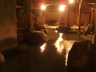地下一階に降りると、広めの大浴場と、滝の流れる露天があります。