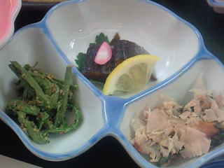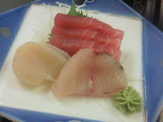 刺身は、三種類でした。活きはいまいちだけど、しかたがないかな-。山だし。他の料理もそれぞれおいしかったですね-。
