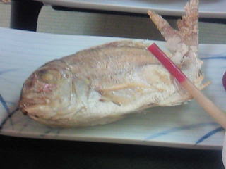 小鯛の塩焼きは、一人一匹付いてきました。実は、食べ方があり、半分は、普通に食べて、もう半分は、ご飯の上に実を敷き詰めて、だしをかけて食べます。