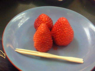 揚げ物、お吸い物、ご飯、デザートにイチゴです。