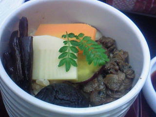 蒸し物は、甘鯛の道明寺蒸しで、ご飯ものは、季節の創作五目ご飯でしたが、しじみを煮詰めたものと、しいたけ、野菜が乗ってて、これがまたうまい。