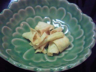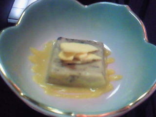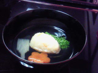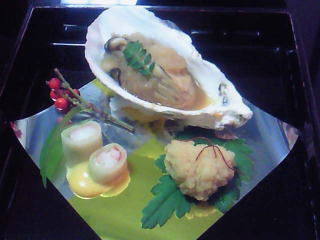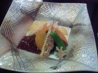 次は前菜で、ずわい蟹を大根で巻いたものを、黄身酢をかけて食べるんですが、先ほどのとは、少し味が違って、うまかったです。