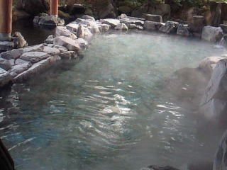 大きい岩風呂の上に、丸い岩風呂がさらにあり、ここがぬるくて、入りやすかったです。