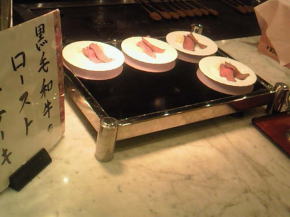 揚げたての、マイタケ、エビフライ、ししとう、キスなど食べたあと、次は、黒毛和牛のローストビーフと、赤城豚のしゃぶしゃぶを食べました。