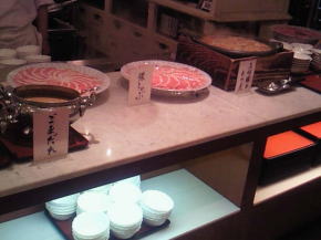その他に、茶碗蒸しと、味噌おでん、茄子の煮付け、赤魚の煮付け、すし4種類、けんちん汁、お切り込み、ミートソースなどを食べて、かなりお腹いっぱいになりました。