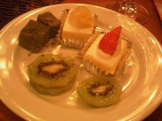 ケーキ二種類に、抹茶のくずきり、ごまだんご、マンゴーのジュレを食べました。
