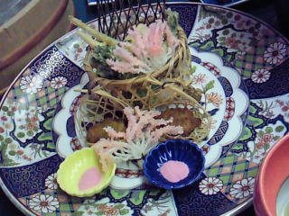 揚げ物は、タラの芽、タケノコ、その他山菜で、梅塩で食べました。うまいですよー。