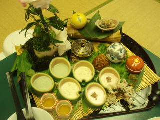 手作り豆腐は、ごまと、よもぎと、桜味で、たれを付けて食べました。