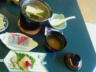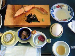湯豆腐、鮭、温泉玉子、しじみ汁、その他惣菜類が、いっぱいありました。
