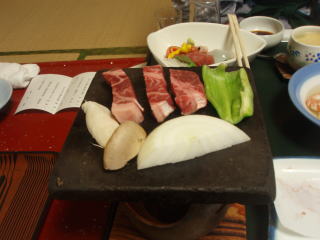 メインは、和牛の溶岩石焼きです。なかなかいい肉使ってて、うまいですねー。