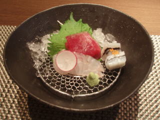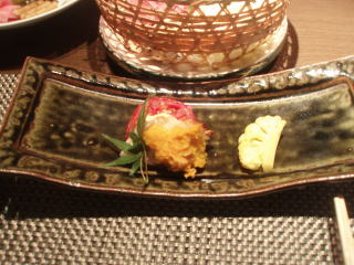 お造りは、三種類あったんだけど、その一つが、またうまかったんです。イカの間に、海苔を挟んで、乾燥うにをかけてあるんです。