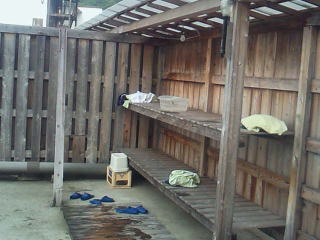 です。うちの奥さんが、撮ってくれました。 男性用の半分位の大きさですが、なかなか広いですよねー。女性用は、奥の方にあります。安心して入れますねー。 |