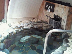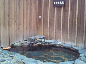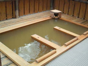 全面檜でできた建物で、湯槽は、内湯に鉄泉が一つ、露天は、硫黄泉が三つに、サウナ、水風呂がひとつずつあります。
