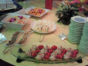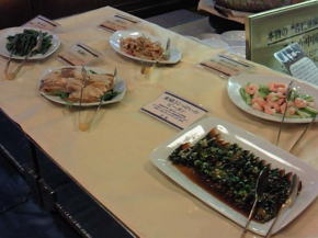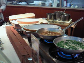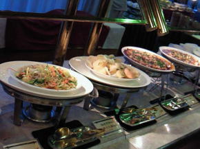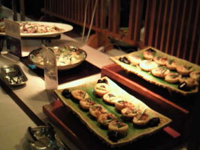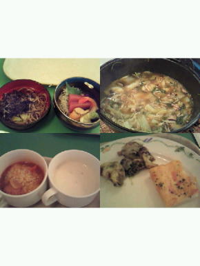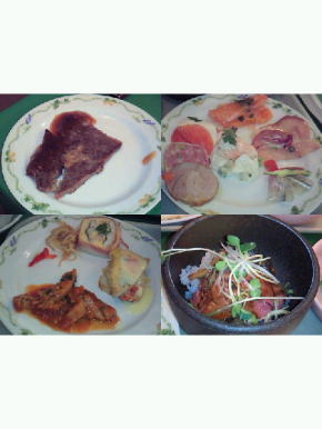 他の料理は、マカジキのポアレ、豚のフィレのフォアイヨ風、海の幸のテリーヌ、ニョッキと野菜のグラタン、小羊のクスクススムール添え、つぶ貝のブルギィョン、タルトフランベ、湯葉饅頭、そば、シュウマイ、ポタージュスープ、小エビとじゃがいものサラダ、トマトのムースキウイソース添え、高原野菜の自家製ピクルス、さよりとアスパラガスのサラダ、スモークサーモンのカルパッチョ、スズキのカルパッチョなどです。