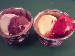 アイスは、ピーチアイス、バニラの、カシスのソルベ、チョコレートアイスがあり、特にピーチアイスがうまかったですねー。