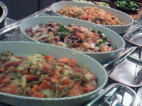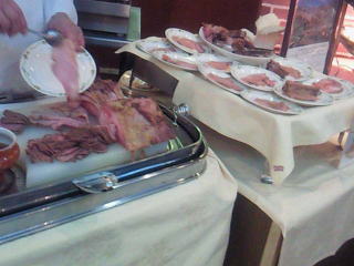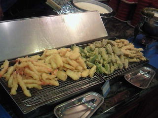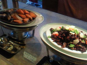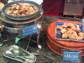 刺身は、マグロ、甘エビ、アワビ?で、すごくうまかったし、やはりビーフシチュー、里芋の煮物は、最高においしくて、何杯も食べましたよー。
