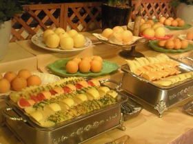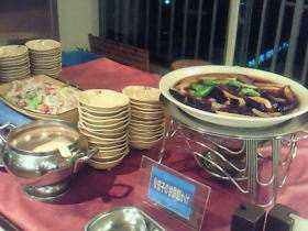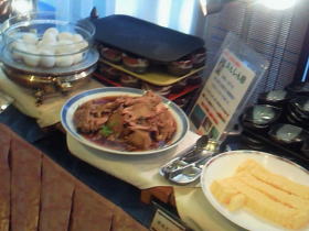 玉子とクラゲのあんかけ、カレーの唐揚げ、一根麺焼きそば、広東風やきそば、目の前で作ってくれるジャージャー麺、トマト麺、担々麺、水餃子、シュウマイ、野菜とチョウザメの炒め物、那須地鶏の雑炊、中華風おかゆ4種、少龍包、手作り豆腐、エビチャーハン、ウィンなー、温泉玉子、ピータンの炒め物、パン類、ヨーグルト3種、目の前で入れてくれる高級ウーロン茶、千本松牧場の牛乳、野菜ジュース、トマトジュース、オレンジジュース、コーヒー、紅茶、果物、野菜、デザートなど、ほんとに最高でしたよー。