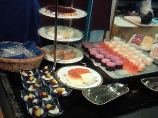 スィートポテトと、レアチーズケーキが絶品で、ゼリーなどは、ブランデーと、ワインを使った大人のスィーツに、仕上がってました。