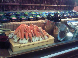 ずわい蟹、ステーキ、にぎり寿司、揚げたて天ぷら、洋食のオードブル、チゲもつ鍋、かた焼きそば、明太子パスタ、秋茄子の煮浸し、そば、かぼちゃのスープ、鰹のたたき、鮪の醤油漬け、手羽先、湯葉田楽、ビーフシチュー、チーズカレードリア、茶碗蒸しなど、かなりの充実ぶりでした。