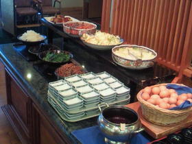 今日の朝は、和食のバイキングです。目の前で作る目玉焼きがうまいですよー。