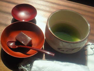 まず、ロビーに座り、抹茶と水ようかんのおもてなしがありました。
