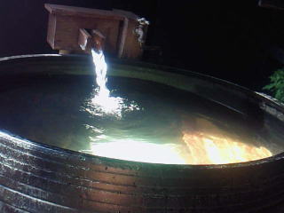 もう一つ、昨日までは貸し切り専用だった幻の湯が、解放されてました。川沿いの露天風呂なので、気持ちいいですねー。