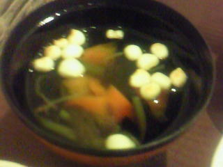 会津小づゆは、お吸物に野菜、キノコ、ホタテなどが入って、なかなかうまかったですねー。