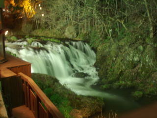 露天風呂は、男性用の風呂より広めでした。ただ、滝が間近で、かなりの迫力でしたねー。